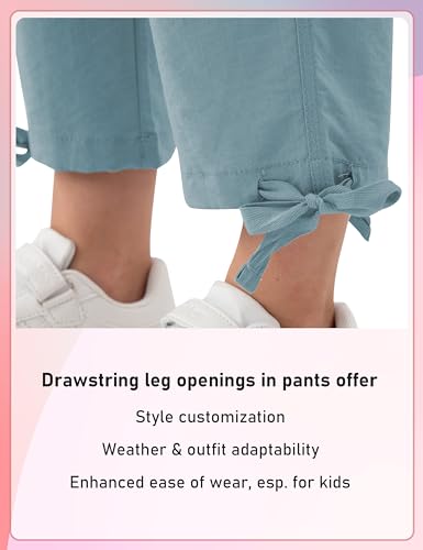 MoFiz Capri Cargo Pants for Girls with Pockets Loose Fit Casual Pant Dressy Lightweight Kids Baggy Parachute Pants for Hiking 7