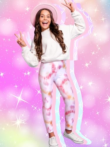 4 Pack Girls Leggings Soft Stretchy Printed Pants for Kids 8-12 Years Tie-dye Rainbow Unicorn, Pink Unicorn & Scale Patterns Ankle Length Athletic Yoga Pants 5