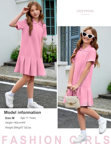 More information about COZYPOIN Girls Polo Dress Short Sleeve Ruffle Pleated School Uniform Summer Casual Active Dropwaist Dresses(Pink-M)