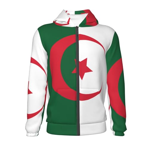 Flag of Algeria Print Girls Athletic Zip Up Hoodies,Sweatshirts with Pockets Long Sleeve Hooded Jackets, for 7-18 Y 3