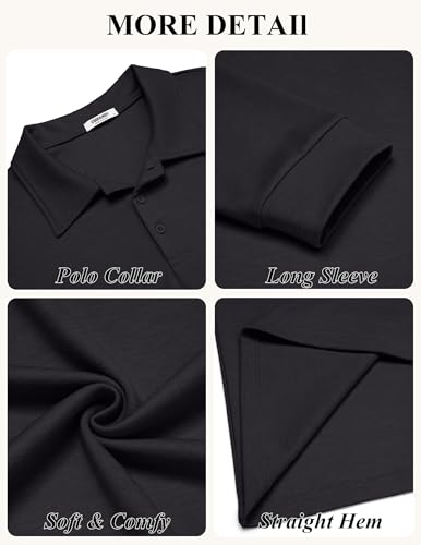 • Premium Fabric: The men's long sleeve polo shirt is made of soft, lightweight and breathable fabric, no pilling or wrinkling, moderate stretch and regular fit, perfect for fall and winter.