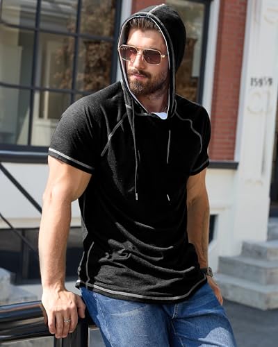 Aiyino Men's Short Sleeve Hoodie Workout Gym Sweatshirt Muscle Fit Fashion Athletic Hoodies Pullover Cotton Hooded T-Shirts 1