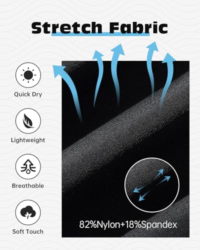 • FABRIC MATERIAL: These men's board shorts are made from a blend of 82% polyamide and 18% spandex. This fabric has superior performance, smooth texture, lightweight and breathable, comfortable and quick drying, colorfast and stretchy