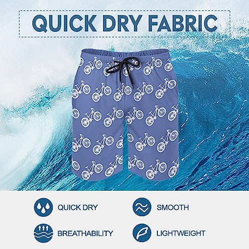 Bike Bycycle Pattern Mens Swim Trunks Quick Dry Beach Shorts Casual Sports Board Shorts Swimwear with Pocket 4