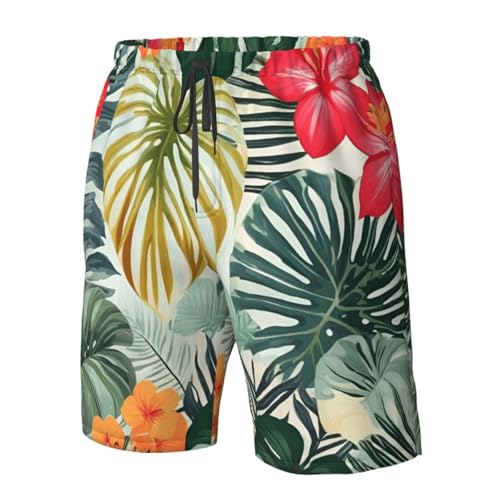 HOT ! Leaves with Hibiscus Print Stylish Beach Shorts Swim Trunks Lightweight Breathable Summer Outdoor Activities