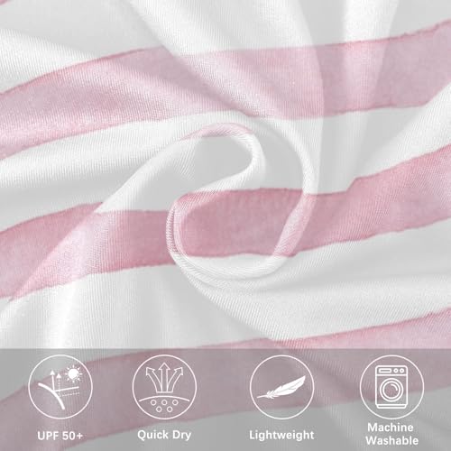 Pink Stripe Sun Protection SPF Rash Guard Shirt Fishing Round Neck Mens Sun Protection Long Sleeve Beach 6