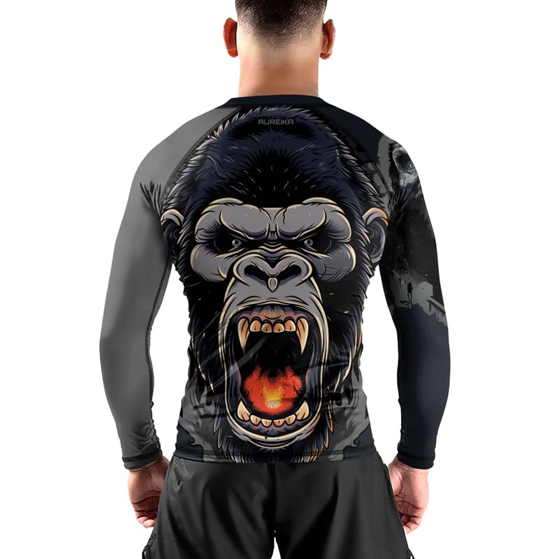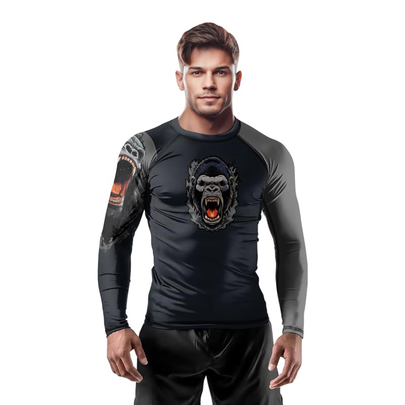 HOT ! Gorilla Long Sleeve Compression Shirt Rash Guard – Premium Training Gear for BJJ Jiu Jitsu MMA Grappling Workouts