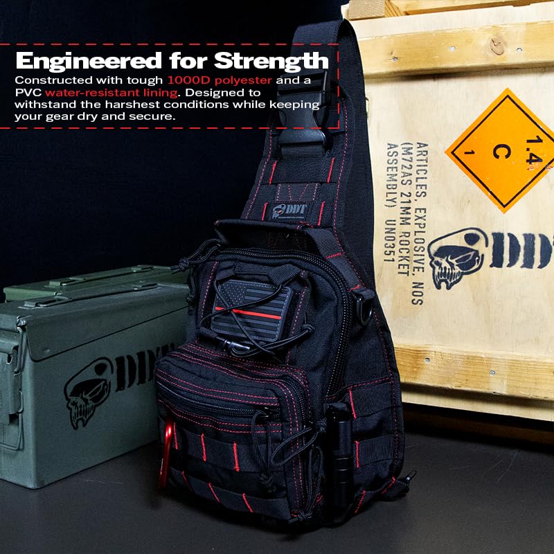 DDT Death Dealer Tactical Night Stalker Small Sling EDC Bag, Color Bloodline 1
