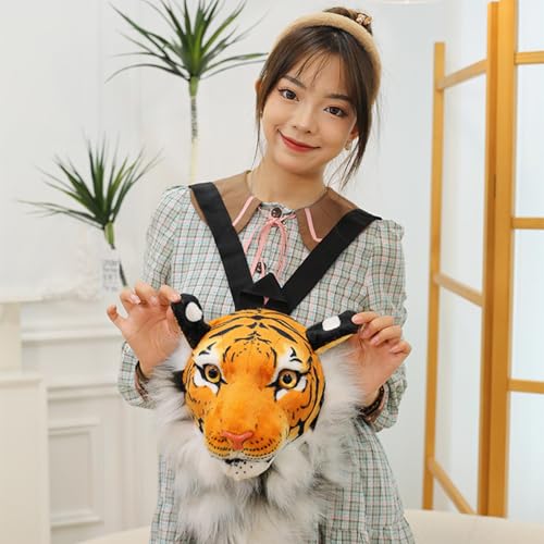 HOT ! Tiger Head Backpack, 14 Inch Animal Head Shoulders Bag, Furry Stuffed Animal Backpack, Backpack for Travel