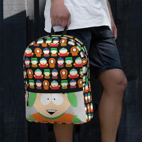 • Features a playful touch with a grinning Kyle on the bottom pocket, adding to the backpack's whimsical appeal.