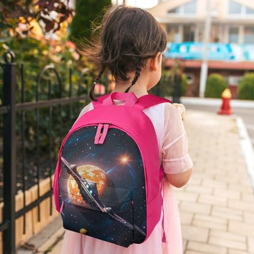 Spaceship Backpack for Men Women, Durable Small Bookbag Lightweight Daypack for Travel, Hiking, Pink-style 2