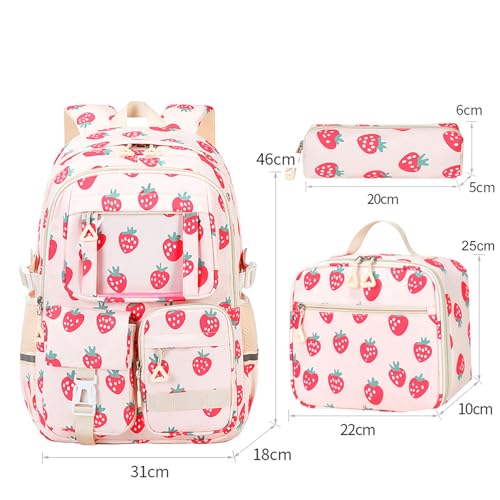HOT ! Coquette Backpack - Cute Strawberry Backpacks 3Pcs Kawaii Daypack Aesthetic Rucksack Set (A01 Strawberry)