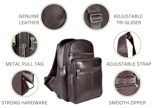 Bullz Crossbody Backpack Travel Hiking Chest Bag Daypack Leather Sling Bag for Men and Women (Brown) 7