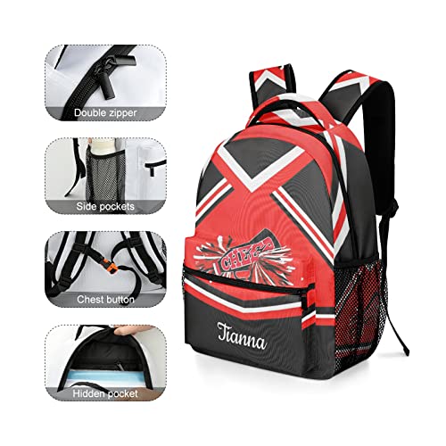 Red Black Cheer Custom Name Backpack Waterproof Casual Daily Pack for Gift Hiking Camper Pack 4