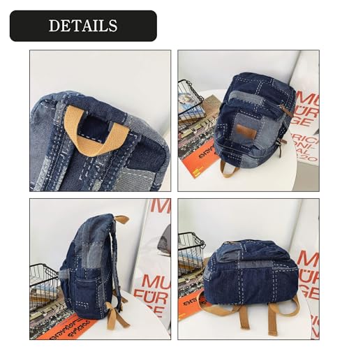 More information about Denim Backpack for Women, Y2K Grunge Aesthetic Canvas Daypack, Stylish Durable Jean Backpack, Vintage Rucksack for Travel Casual Use (Black)