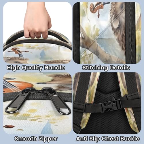 Watercolor Hedgehogs Guitar Backpack with Chest Strap Reflective Lightweight Travel Hiking Backpack for Men Women Waterproof Daypack Back Pack for Commute Camping 5
