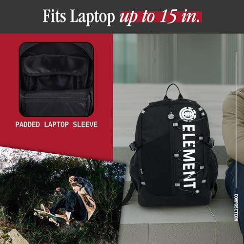 Element Backpack, Vertical Logo Skate Pack, Multi-Compartment Storage, Reflective Bungee Cord, Black 1