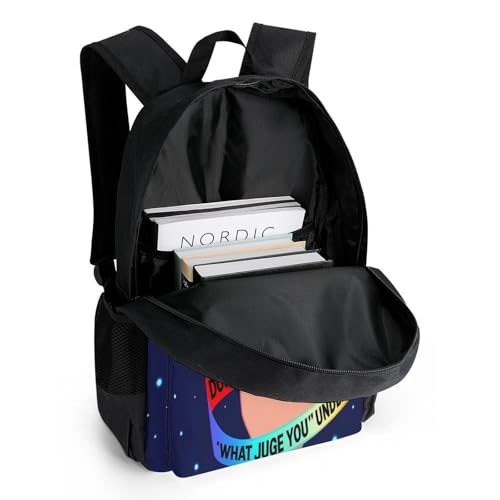 • Backpack Structure: Big capacity main pocket + two side pockets; The main pocket is very practical for your laptop, books, stationary, lunch box, book, wallet, keys, phone, and camera; Two side pockets can hold water bottles and umbrellas
