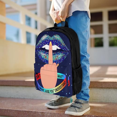 Supdreamc Lightweight Rucksacks for Climbing Outdoors Walking Cycling - Large Capacity Anti-Theft Multipurpose Carry On Bag, Autism Puzzles Lip Blue Art Camping Outdoor Backpack 4