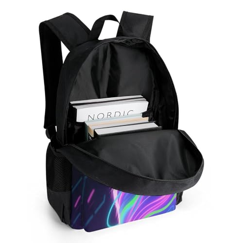 Supdreamc Backpack Multipurpose Anti-Theft Large Capacity Bookbag - Neon Line Cat Art Travel Hiking Daypack With Side Pockets 7