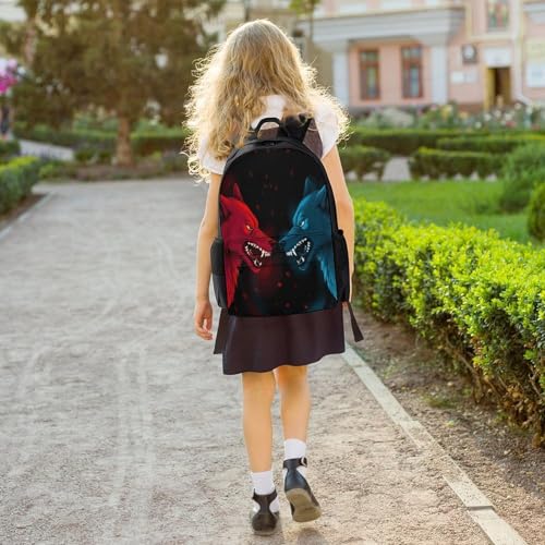 Supdreamc Men Women Polyester Red And Blue Angry Wolf Fight Daypack Backpack Large Capacity Carry On Bag With Smooth Zippers for Hiking Picnic Walking Cycling 3