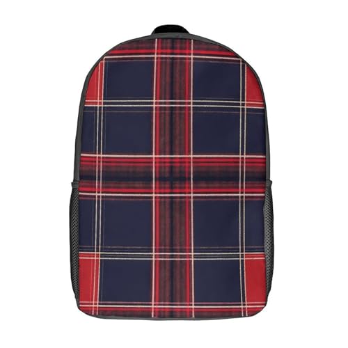 Blue Red Tartan Plaid Pattern Unisex Backpack 17" Casual Daypacks Simple Shoulders Bag for Camping Hiking Travel Gear 1