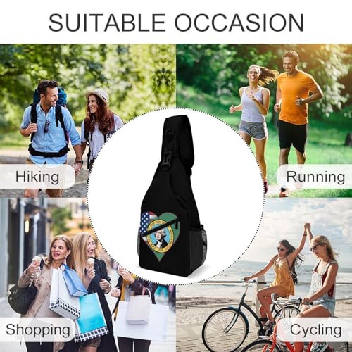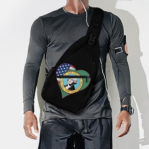 HOT ! U.S.A. State of Washington Flag Heart Crossbody Sling Backpack Casual Chest Bag Fanny Pack for Women Men Travel Hiking