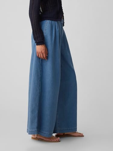 • Function Design: Soft denim trousers, button closure, zip fly, front slant pockets, back welt pocket, pleating at front.Iconic essentials meet coastal classics.Inspired by nostalgia, made with feminine details, meant to be worn and lived in
