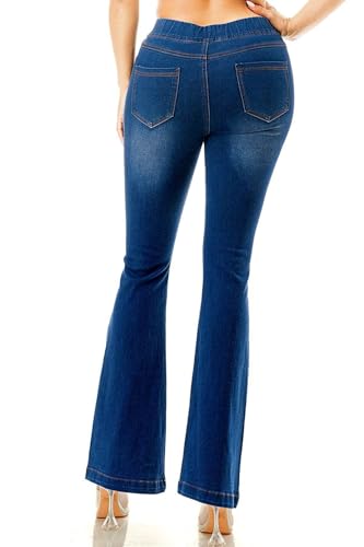 • Ultra wearable womens flare wide leg jeans get a comfy easy pull on styling with elasticized waistband for even better fit giving you all day comfort and custom fit without the risk of bulky, sagging, bagging