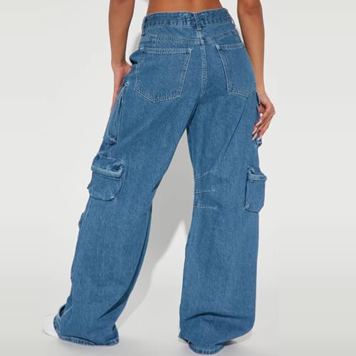 Women's Cargo Pants Low Waist Baggy Jeans Y2K Pocket Wide Leg Casual Trendy Streetwear 2