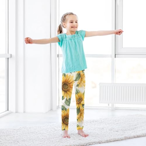 Watercolor Sunflower Girls Leggings Ultra Soft Compression Yoga Gym Pants for Kids 4-10T 5