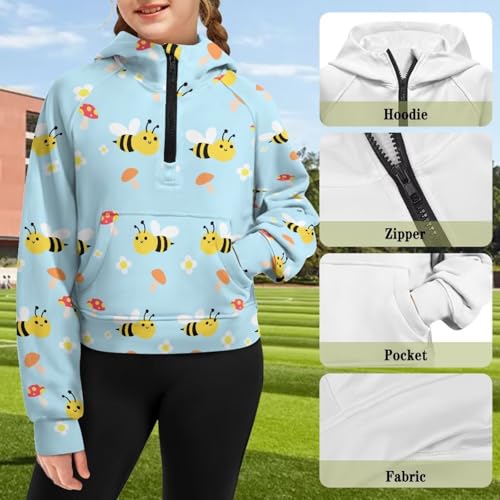 HOT ! Girls' Cropped Half Zip Hoodie, Lightweight Pullover with Pocket for Casual Fall Spring Wear