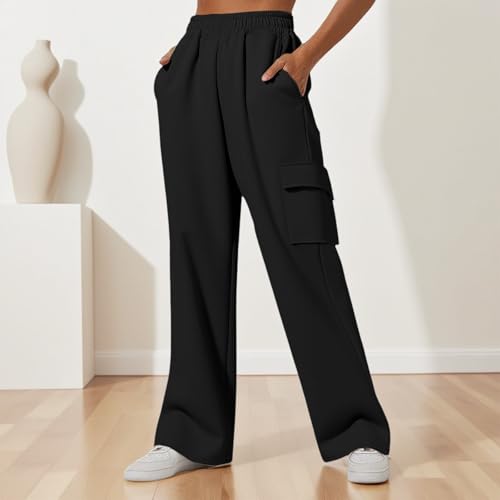 HOT ! Girls Baggy Cargo Pants Solid Comfy Sweatpants Kids Straight Wide Leg Athletic Joggers Casual Pants with Pockets