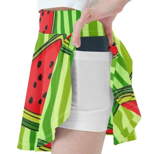 Watermelon Slices Green Stripes Athletic Shorts for Girls Skorts Kids Tennis Skirts Dance Pleated Skort 3t 5