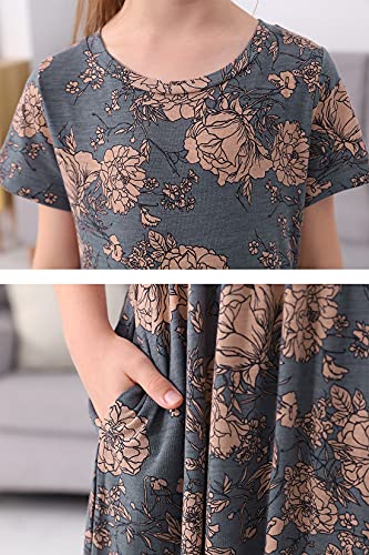 GORLYA Girl's Short Sleeve Floral Print Loose Casual Long Maxi Dress with Pockets 4-12 Years 4