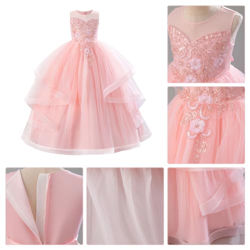 • Little big girls embroidery sequin lace flower wedding bridesmaid pageant formal party long maxi dress, sweet junior princess first communion birthday graduation dance prom gown shiny puffy tulle ball dresses, elegant and gorgeous shiny sequins sleeveless full length dresses for 5-14 year-old baby kids toddler girl