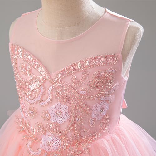 IDOPIP Sequin Flower Girl Dress for Wedding Pageant Tulle Ball Gown Prom Kids Princess Birthday Party Bridesmaid Maxi Dresses 6