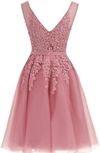 • Features: Lace Appliques Short Prom Party Dress for Women,A Line Tulle Homecoming Dresses for Juniors, Bridesmaid Dresses for Wedding,V neck Sleeveless Evening Party Gown