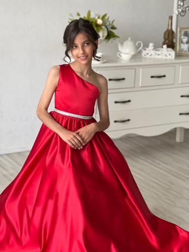yinyyinhs One Shoulder Satin Flower Girl Dresses for Wedding Beaded Princess Pageant Dresses Kids Prom Ball Gowns 6