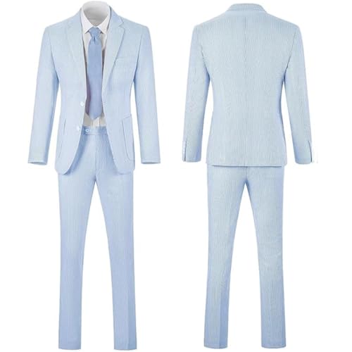 More information about Fxzpiodi Seersucker Men Suit Striped Tuxedos Jacket Pants Set Slim Fit 2 Pieces Mens Suit Wedding Grooms Summer Prom