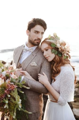 SHUZHXLZANGY Mens Linen Suits for Men 3 Piece Suit Regular Fit Linen Suit Men Summer Beach Wedding Suits 3