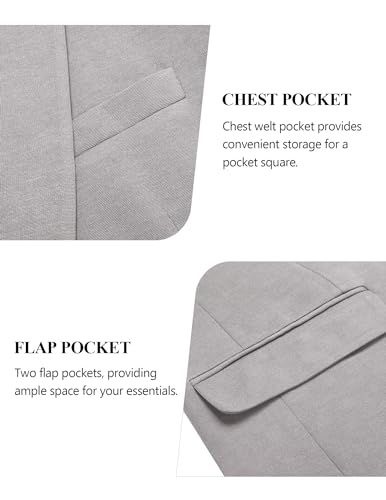 • POCKETS DESIGN: This mens casual blazer is crafted with attention to detail, including two flap pockets and one inner pocket for convenient storage. One chest welt pocket for your handkerchief. All pockets are real and available. Pockets are sewn on by thread, you need to cut it open with scissors or a sharp object after you receive it.