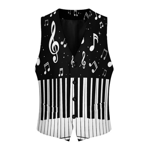 HOT ! Musical Piano Keys Mens Suit Vest Waistcoat Formal V Neck Business Dress for Wedding Party