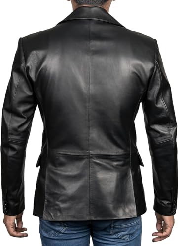 Genuine Lambskin Black Leather Blazer for Men Overcoat Casual Blazer Jacket for Men 5
