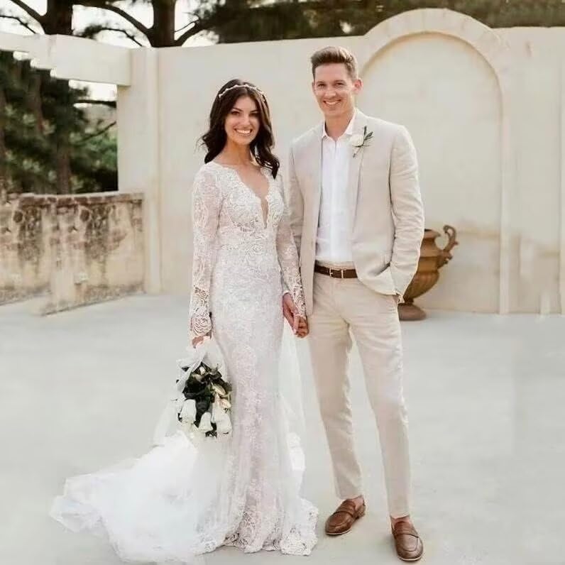 HOT ! Mens Linen Suit 2 Piece Slim Fit Summer Beach Wedding Suits Casual Lightweight Linen Suit Blazer Pants Set