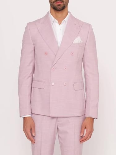 • 【Feature】:men's slim fit 2 piece linen suit,classic peak lapel,double breasted,2-buttons closure, 2 flap pockets on front of jacket ,2 vent on the back.flat front pants.Classic design shows your taste and make you modern and elegant.