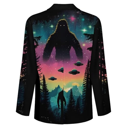Bigfoot and Aliens Mens Suit Jacket Lapel Blazers V Neck Button Business Coat Tuxedo for Wedding Party 6