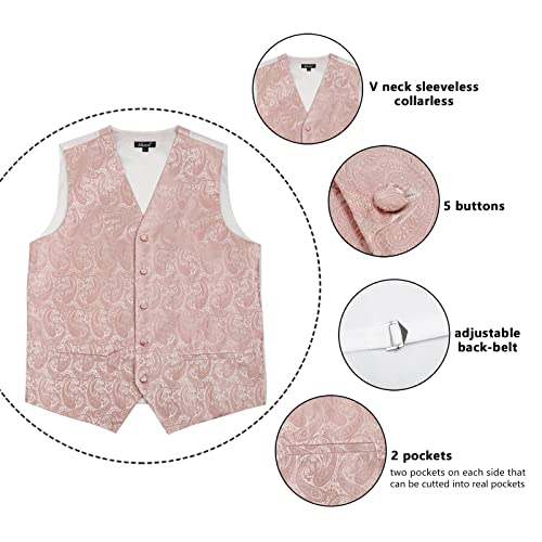 • [Design] Formal suit vest set, 5 Pcs, classic paisley pattern, v-neck , Button-Down, 6 buttons, back adjustable belt. Sets of the same color reduce matching difficulties for you. Attention: Two pockets on each side can be cut into real pockets