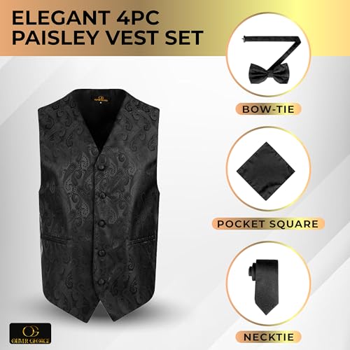 Oliver George Men's 4pc Paisley Formal Suit Waistcoat Tuxedo Dress Vest Necktie Bowtie Handkerchief Set for Suit or Tuxedo 4
