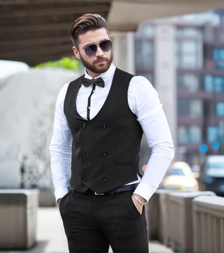 MllesReve Men's Slim Fit Waistcoat U Neck Double Breasted Suit Vest 3